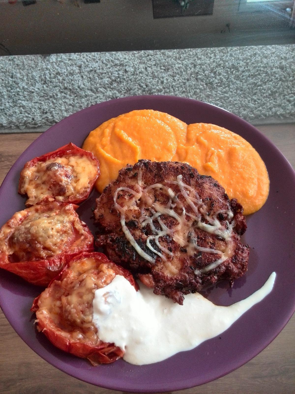 mrkvove pyre mlety rezen gril paradajka s cesnakovym dresingom