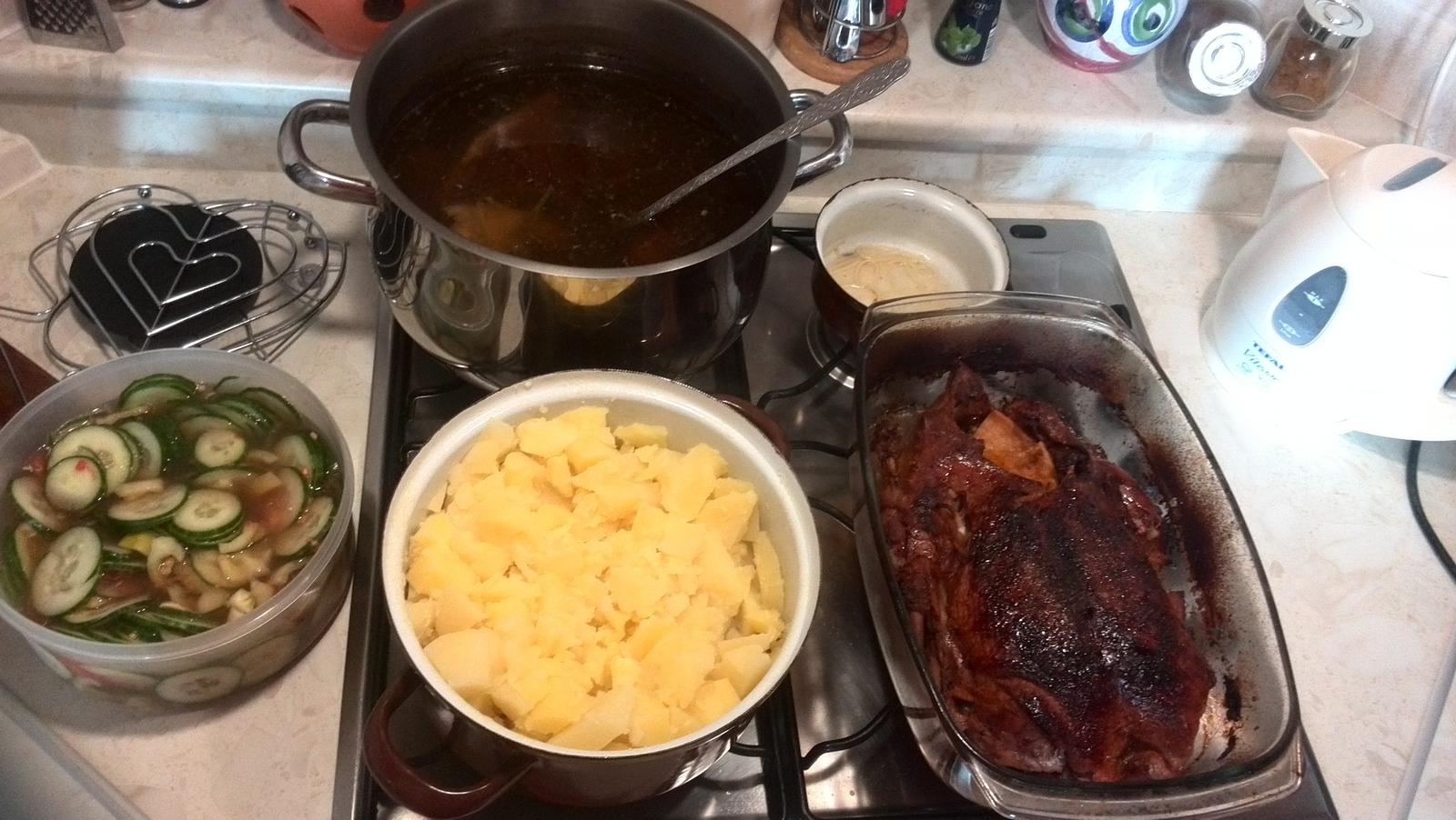 hovadzia polievka zemiaky kacka a uhorkovy salat