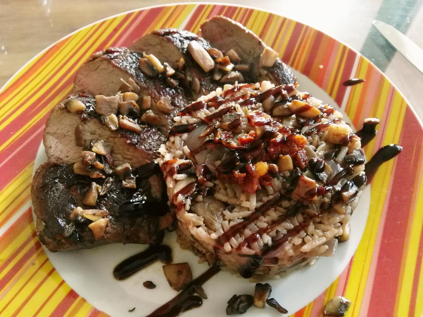 pstrosi steak hubove rizoto