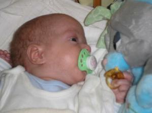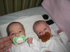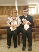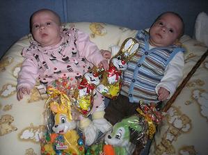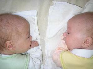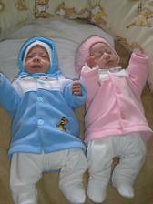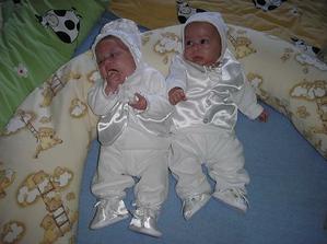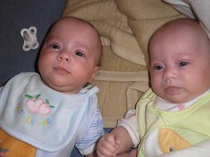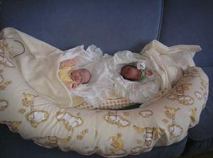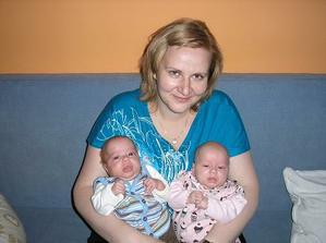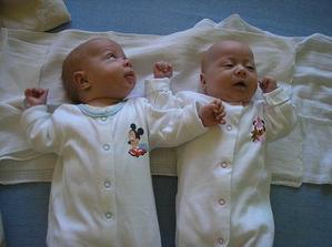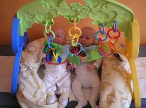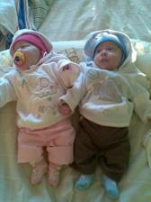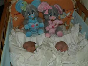 Dňa 18. 1. 2009 sa z nás stali najšťastnejší rodičia na svete . Aj keď trochu predčasne v 32 tt prišli na svet naše detičky . Ako prvá Karolínka o 4 hod. ráno , s mierami 40 cm a 1680 g a dve minútky po nej prišiel Oliverko , s mierami 40 cm a 1600 g. Museli byť napojení na prístroje , ale 21. 1. odpojili Karolínku , lebo už začala pekne dýchať a 22. 1. odpojili aj Oliverka . 24.1. nás vybrali z inkubátora a dali nás už iba na vyhrievacú podložku , ale hlavne, že som spolu ako v mamičkinom brušku 🙂 24. 2. nás konečne prepustili domov z nemocnice po dlhých piatich týždňoch . Po týždni doma sme sa boli vážiť u pani doktorky a pribrali sme po 300 g a teraz už má Oliver 2,5 kg a Karolínka 2,35 kg . 23.3. už vážime O. 3250g a K. 3050g.