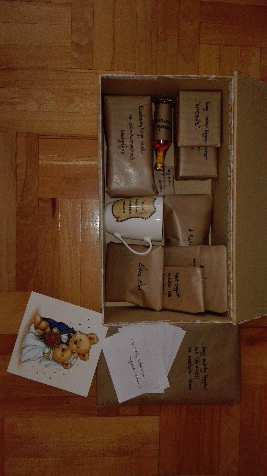 autorDakujem za super napady 🙂 kresleny obraz sme darovali aj my raz a teraz ma tiez napadlo spravit taku krabicku s odkazmi a s dobnostami, ako je cumlik,kondom, sosky, nejake vtipy a citacie a samozrejme peniazky. Tak myslite ze by to mal uspech? 🙂