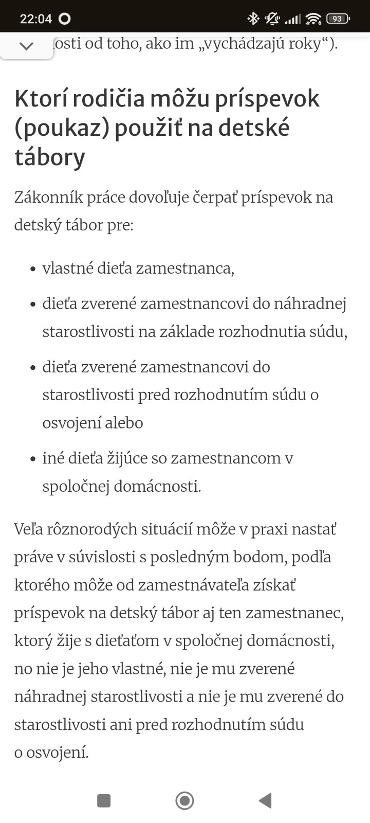 Prosím vás, neviete ako funguje rekreačný príspevok a príspevok na tábor? My s manželom pracujeme v menších firmách a nemáme ho,no moji obaja rodicia majú a nikdy ho ešte nevyužili. A teraz sa ma mama pýta,či nemôže z toho dcére zaplatiť tábor. Ale to asi nejde takto ze? Ďakujem vopred za reakcie