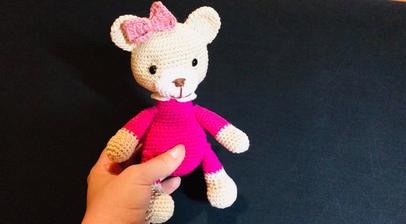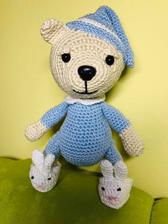 Hačkovaný macko, výška 25 cm, vyrobený zo 100% bavlny.