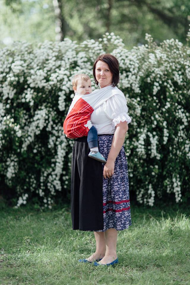 Iste, uznávam, že mama, ktorá si zavinula svoje dieťa do hajtky či zajdky pred 80 rokmi, mala asi iné hlavné dôvody na nosenie svojho dieťaťa ako súčasná mama. A to mi presne chodilo po rozume po celý čas, čo som si v kroji a tradičnej autentickej šatke užívala so synom akciu. Rozmýšľala som, ako si to nosenie viem naplno vychutnať, ako sa teším z našej vzájomnej blízkosti a ako syna ani nechcem zo šatky vybrať. Myslím, že voľakedy sa predovšetkým nosilo preto, že to bolo normálne a prirodzené. Že to bolo súčasťou sveta našich prarodičov, do ktorého sa rodili deti a v ktorom boli vychovávané. Nič iné nebolo. Len normálna a prirodzená starostlivosť o dieťa, ktorej súčasťou bolo aj dojčenie, spoločné spanie či nosenie detí v šatke na tele ženy - matky. Taká mama mala vtedy okolo seba kŕdeľ detí, ktoré bolo treba uživiť. Chodilo sa na polia, role či lúky, kde sa kosilo, hrabalo, sadilo a zberalo. Proste sa pracovalo. A pracovala aj matka. O mladšie deti sa starali tie staršie. Zo šatiek sa spravili kolísky (ako tie naše moderné hačky) a v nich sa najmenšie deti so súrodencami prehrali a pospali, kým mama pracovala.