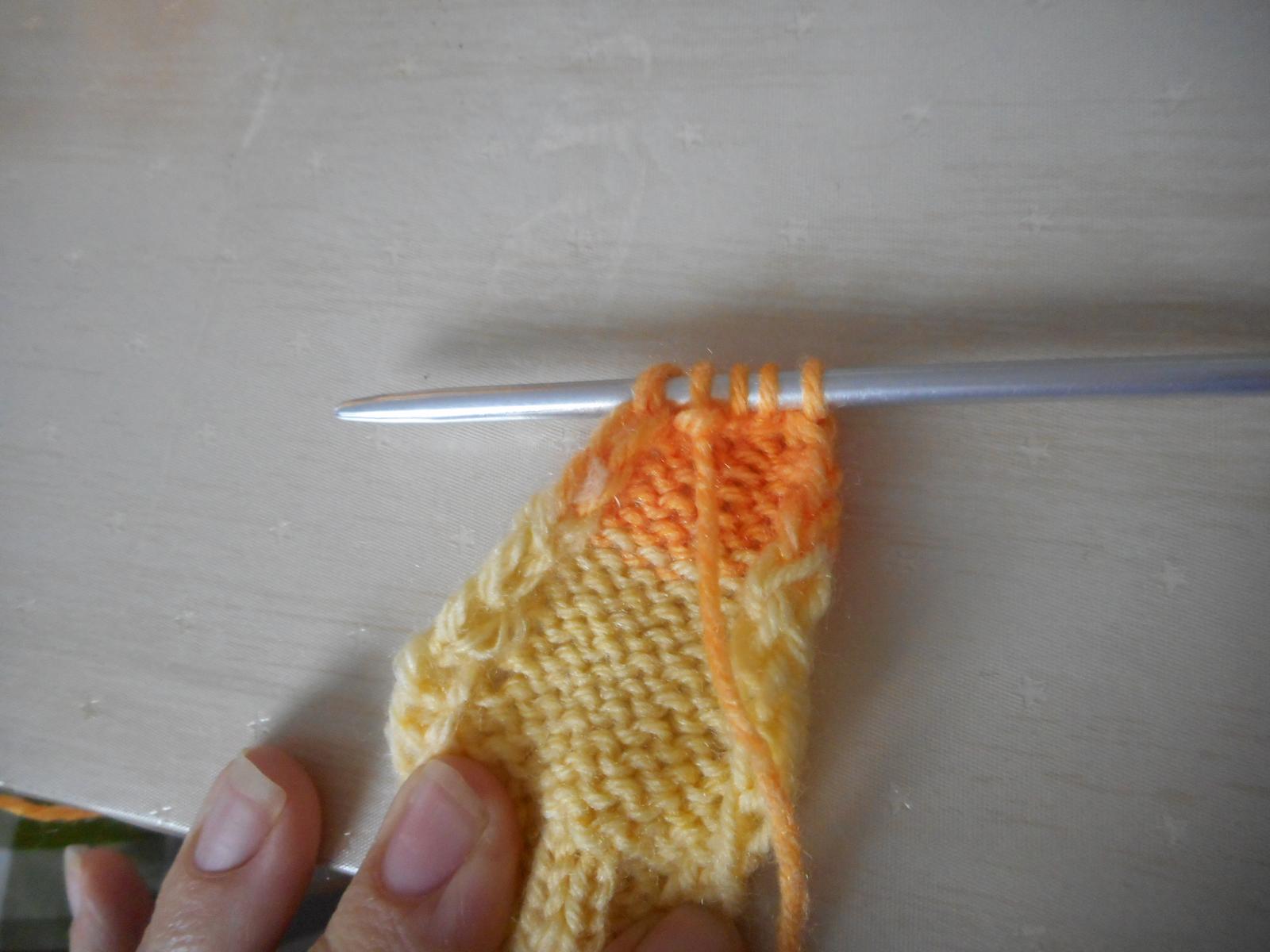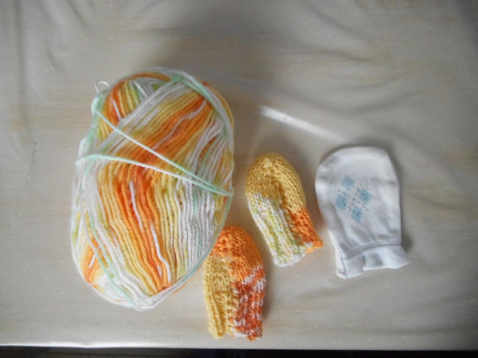 Druhá rukavička vyšla takto - pripomína mi to Nema :D Ešte upletiem zopár párov a potom spárujem, aby sedelo melírovanie. Rukavičky majú dĺžku asi 8 cm.