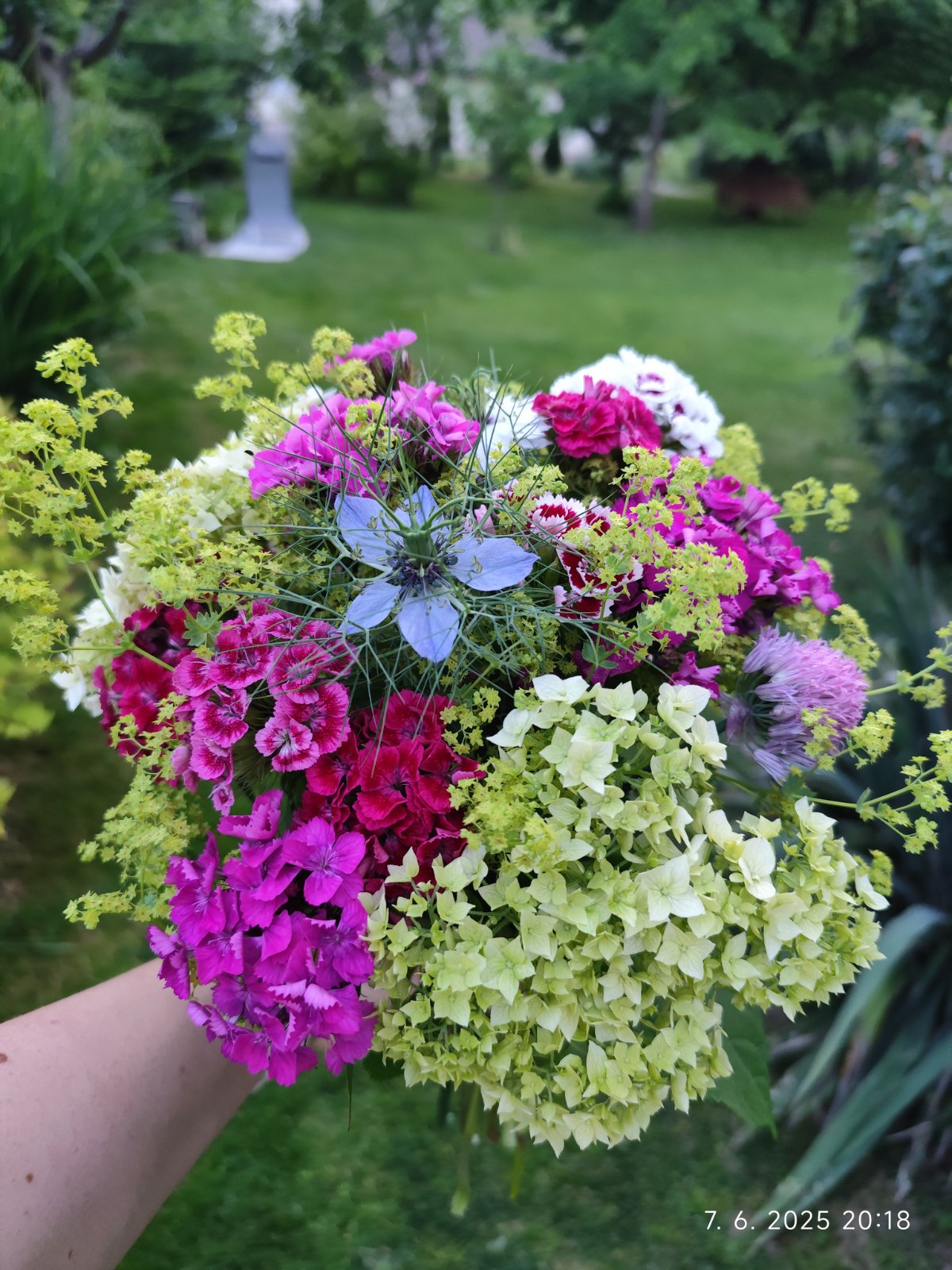 Záhrada už začína ukazovať svoju krásu. Hortenzie majú výšku cca 2 metre a čochvíľa zakvitnú v plnej kráse. Najskôr majú zelené kvietky, ktoré sa rozvinú do veľkých bielych sukvetí.