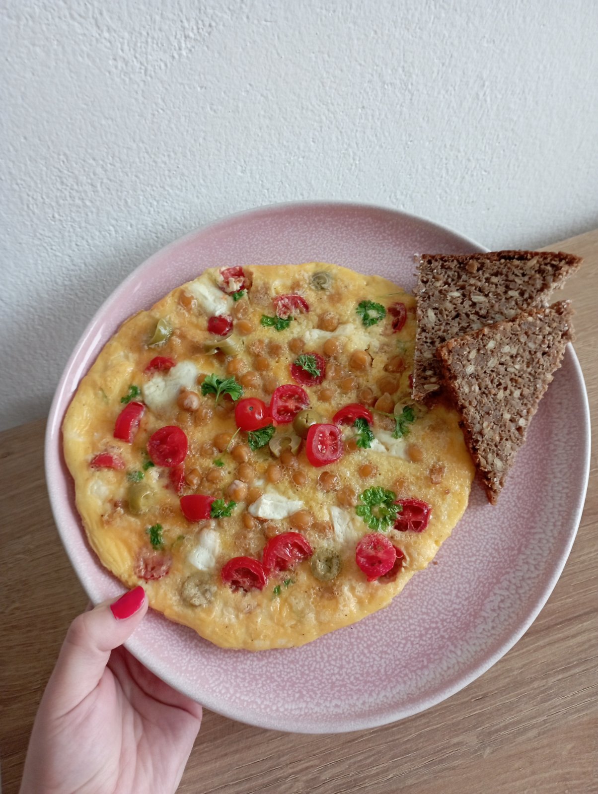 autor@motylikova vajcia, cícer, olivy, cherry paradajky, balkánsky syr a petržlen kučeravý, korenie podľa chuti 🙂