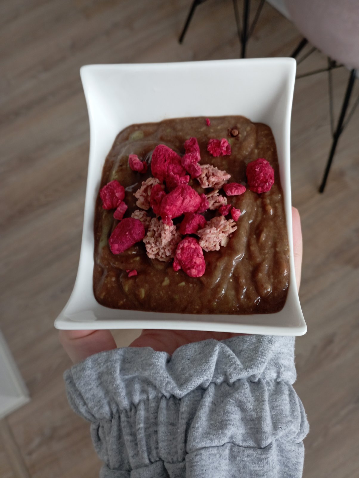 Tip na raňajky: avokádový puding ( rozmixuješ 1 avokádo+1 banán+ lyžicu kakaa), posypané granolou a lyofilizovanými malinami =)