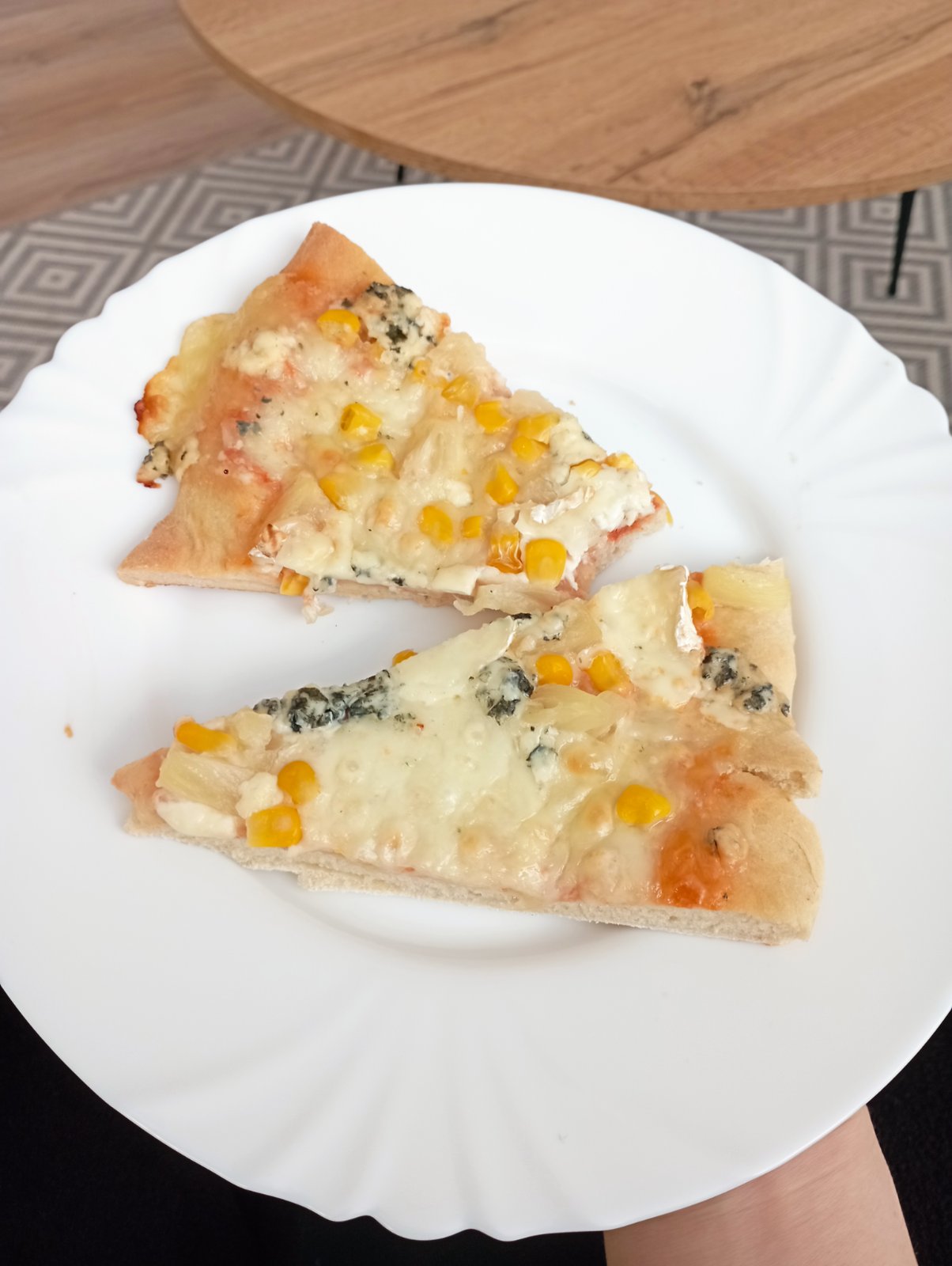 Pizza, skrížené Quatro formaggi s Hawaii bez šunky samozrejme 😀