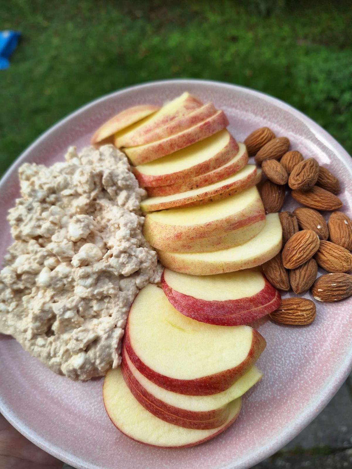 Tip na raňajky: karamelové cottage cheese, jablko, mandle 👌