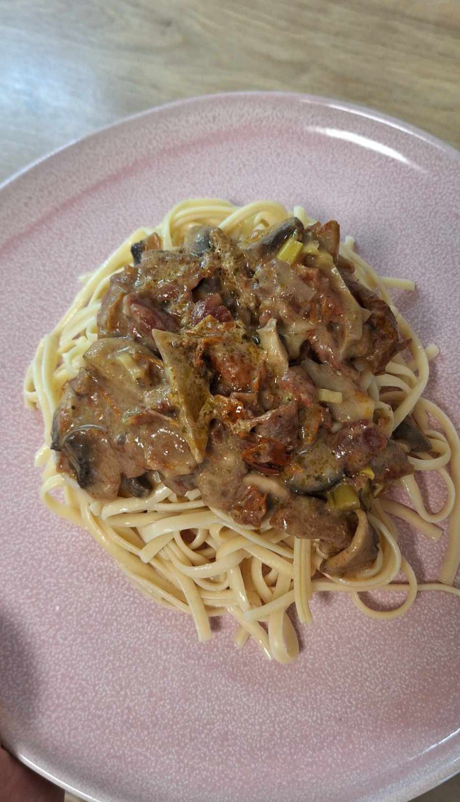 Linguine so zmesou z húb a sušených paradajok 🙃