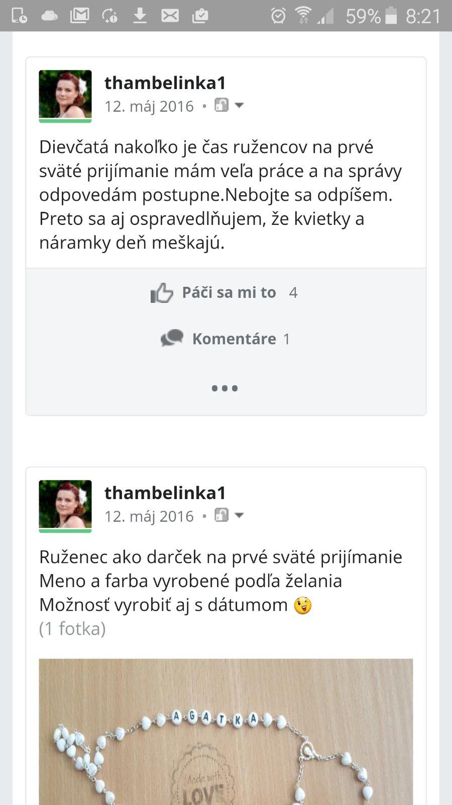 Čiže každý vedel ze kvietky a naramky sa posielajú neskôr lebo ružence sa vybavujú prednostne stačilo si to prečítať