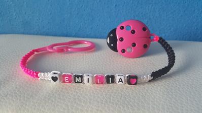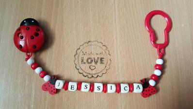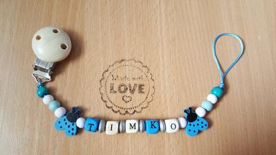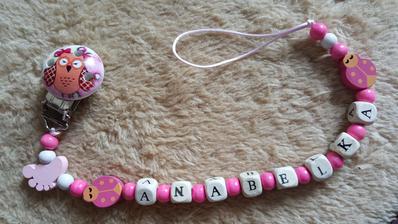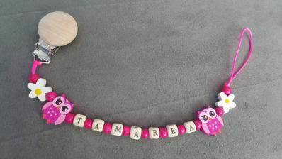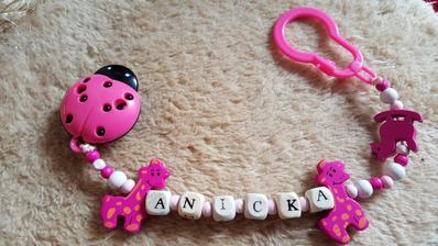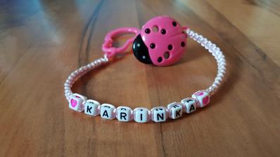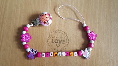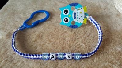 Chráni obľúbený cumlík Vášho dieťatka proti pádu, špine alebo strate. Držiak je vybavený sponou, ktorá sa dá pripevniť k odevu dieťaťa. Zaoblené hrany neublíži dieťatku a rôzne tvary a farby plastového klipu a nitiek zaujmú dieťa.Meno, tvar písmen, farba vyrobené na želanie. Niektoré v tme svietia.