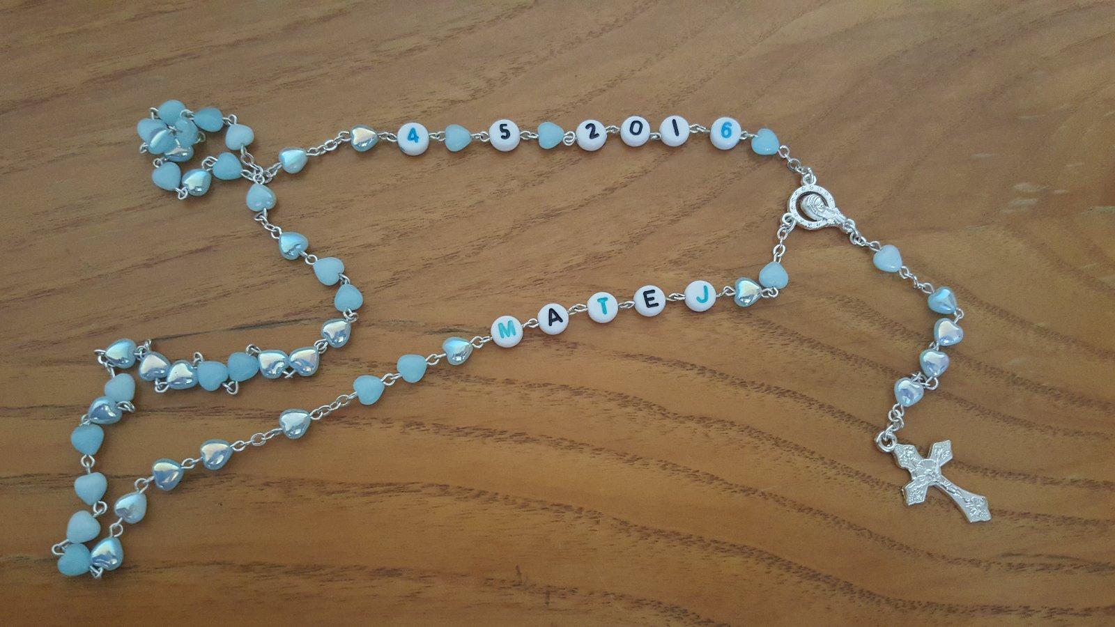 Ruženec ako darček a spomienka na prvé sväté prijímanie, krst, svadbu či narodenie.Farba, meno a dátum podľa želania