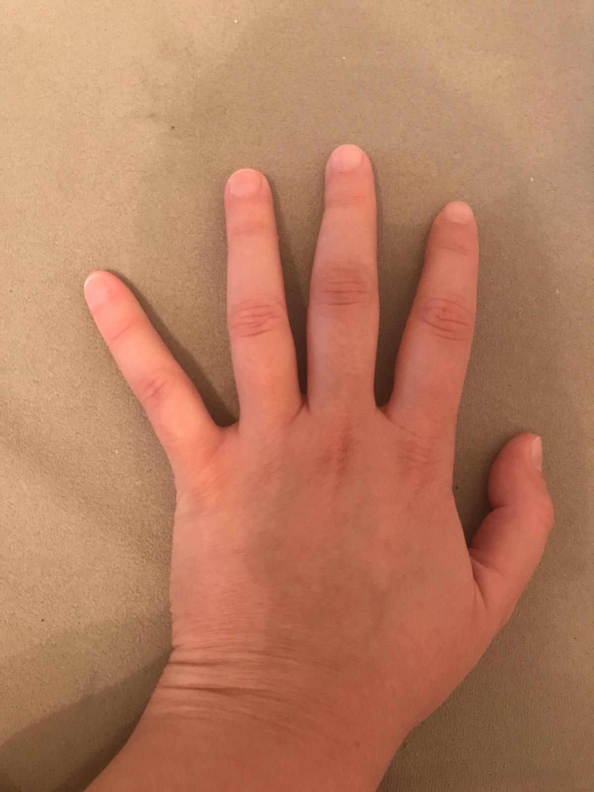 Zienky poradite? Zvazujem ci ist rano k dr. alebo nie.. Mala som uraz prsta, boli ma, ale zas nie nejak strasne, no pri kazdom pohybe.. Stalo sa to na obed.. 1. foto je ruka po uraze (prostrednik), 2. foto je zdravej ruky. Myslite ze tam je opuch aj ci ani nie? 🤔 jasne ze sa rozhodnem definitivne ja sama a rano, ale rady potesia 🙂