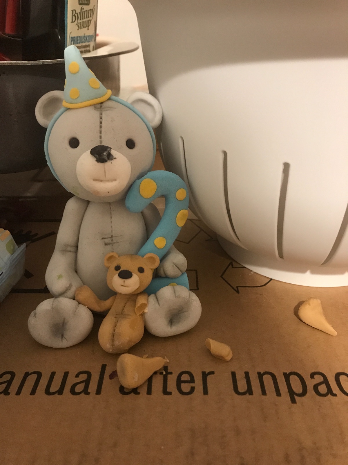 Zienky poradte cim ho dat dokopy 😭 marcipanovy macik, len na odlozenie ma uz 2 roky, ale odbili sa mu nozicky 😒 vsetky dieliky mam len nech ho zratujem prosiiim 😒