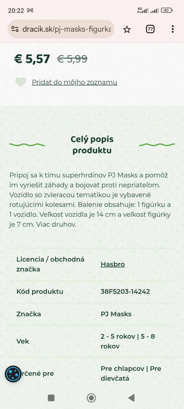 Žienky prosím náhodou niektorá z vás čo nie ste z BA keby ste mali cestu do Dráčika u vás v meste, boli by ste mi ochotna pozrieť jednu hračku či u vás nie je? Už som obehala celú BA a nikde ju nemajú, e-shop tiež 0 bodov 🙄 nie je to na Vianoce, teda kľudne aj medzí sviatkami ak by ste cestu mali, budem to potrebovať až na január. Jasné napísala by som o čo presne sa jedná ak sa niektorá ozvete 🙂 vopred ďakujem 🙂