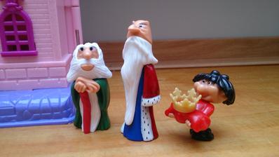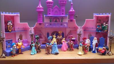Dcérka ma ešte len rok, ale ja som sa rozhodla, že jej zariadim zámok s obyvateľmi. Všetko to začalo princezničkou z kinderka a toto je výsledok. Trvalo to, stálo to, ale nakoniec som to dokončila. Zámok, figúrky pozháňané tu na MK, pomohla som si lakom na nechty, výstrižkami z časopisov, fixami a pastelkami 🙂 Niektoré mamičky si tu asi nájdu svoj tovar :D