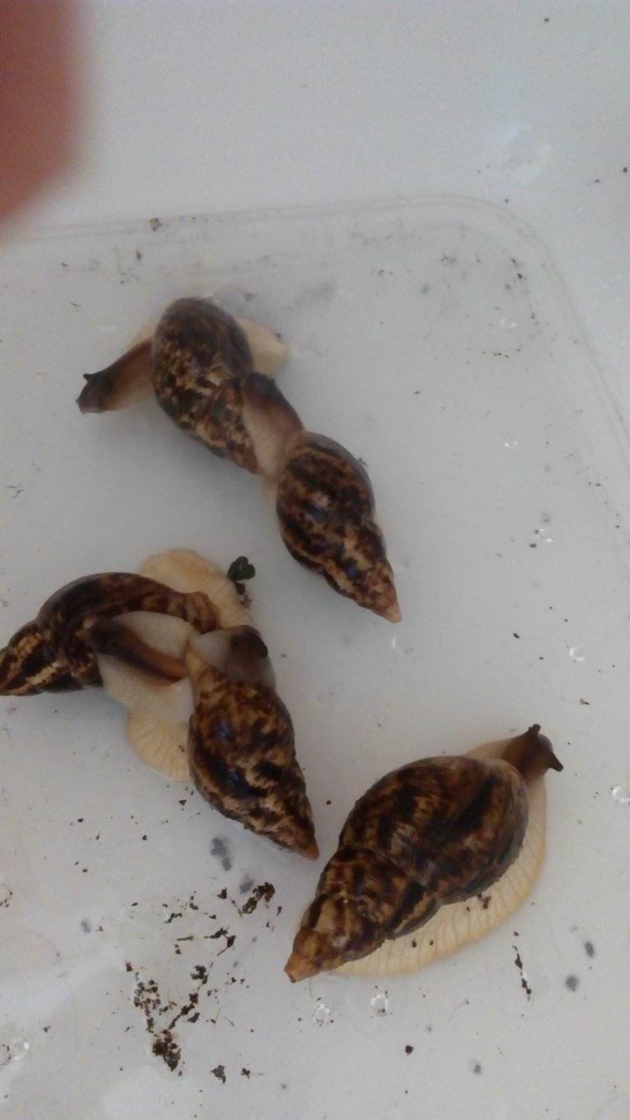 @ivi80 ktory druh ?? ten velky ?? to je cca rocny slimacik Lissachatina Immaticulata 🙂 mala som ich v akvarku ale dala som ich do boxu plastoveho 1. lepsie sa tam udrzuje vlhkost a po dalsie je vacsi na taky pocet slimakov. ale panujem vacsie sklenene, len to musim kupit aj nejaku skrinku na ktorom budu ..