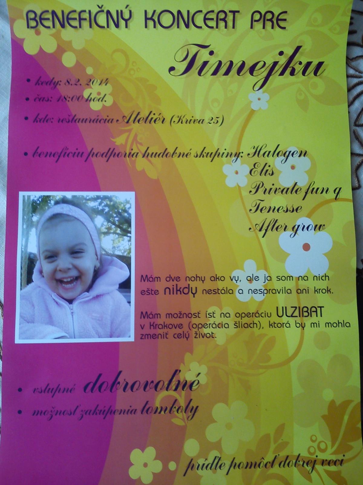 Baby z Košíc a okolia mal by niekto zaujem prist sa zabavit, a tak pomoct Timejke?Celá suma ide Timejke na operáciu.