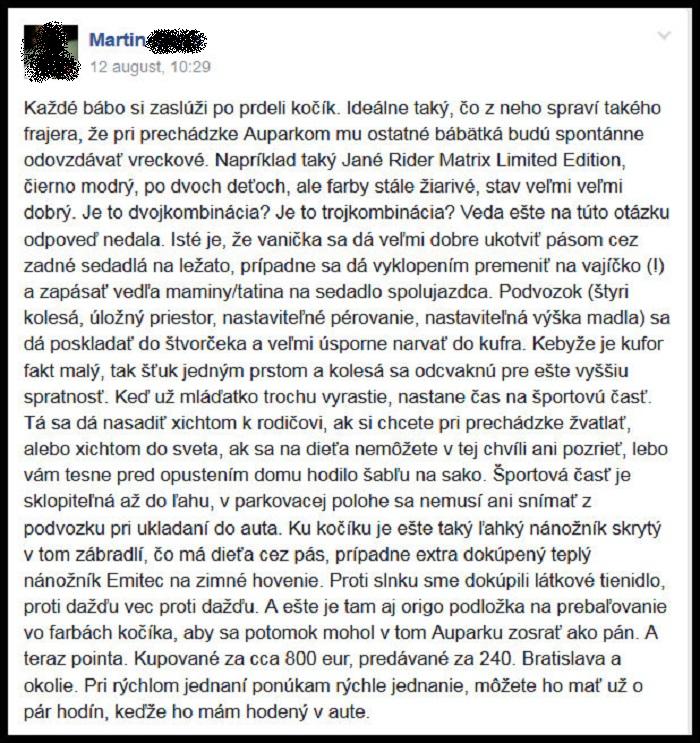 Inzerát na kočík 🙂 Ocko si dal záležať 🙂 🙂 🙂