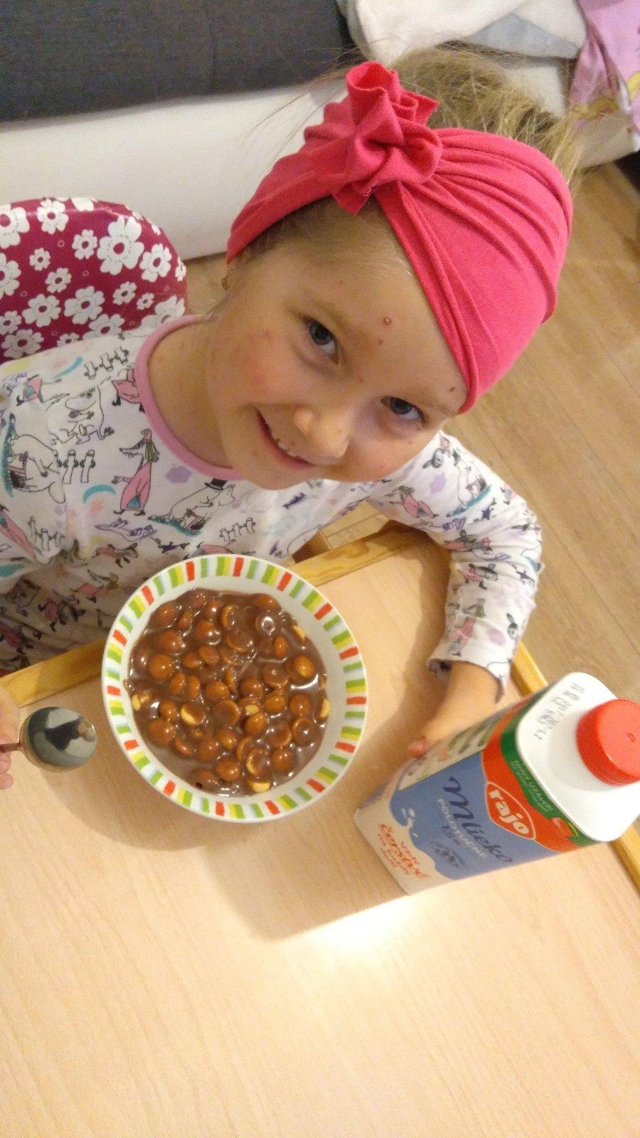Pudincek na večeru pre moju kiahnicku malinkú, no a čo 😉 Ešte aj čelenku maminka vyrobila 😝