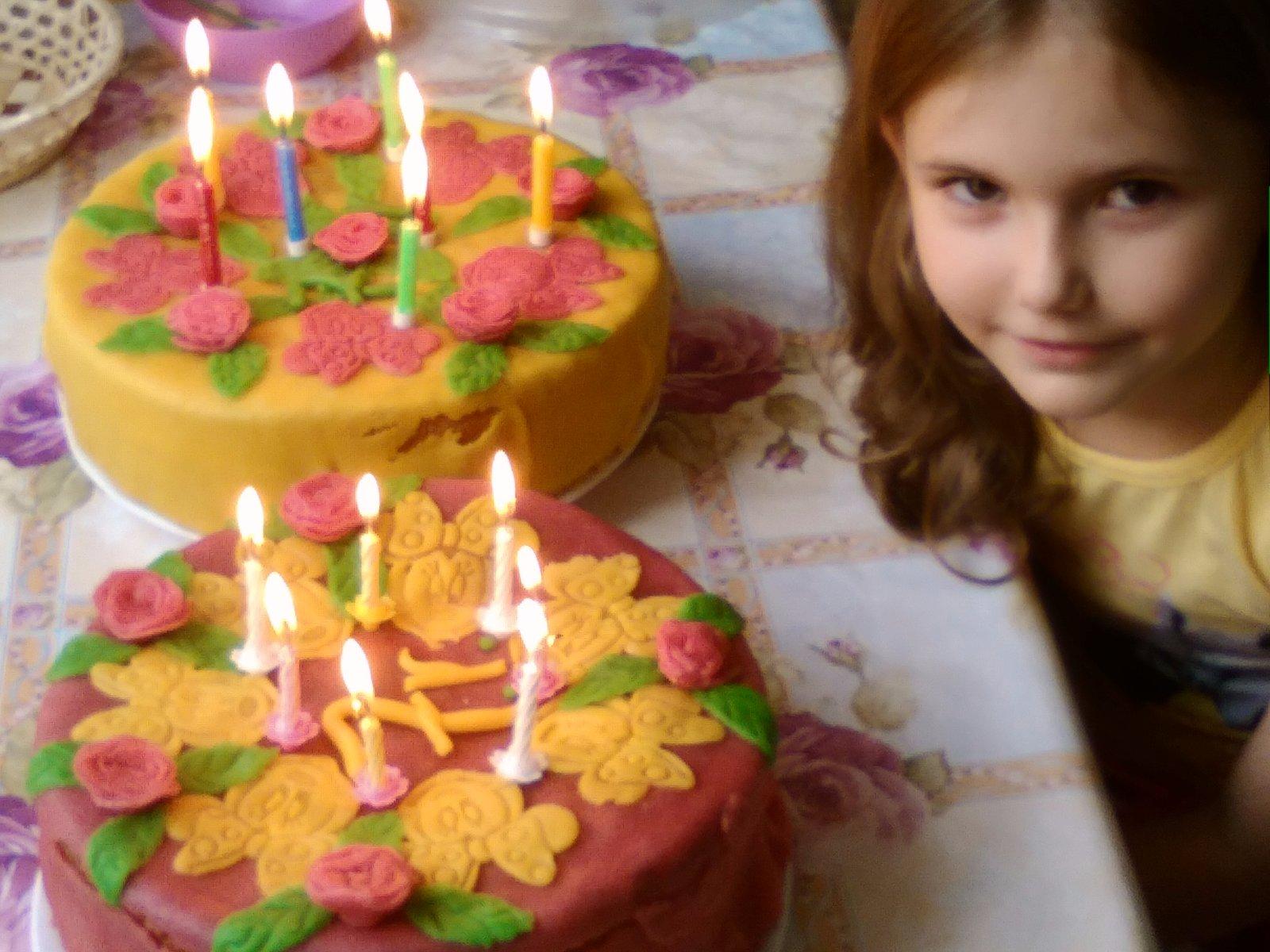 U nás teraz robí sladký život tieto dve torty ktoré som spolu s dievčatmi upiekla k siedmim narodeninám. Najlepším prekvapením bolo jak cez deň sme torty z chladničky vybrali a marcipán spadol z torty ale sladký život to nepokazilo brušku to nevadilo. Zamaskovali sme to tanierikmi delisimo, aby si každý vybral aký chce.
