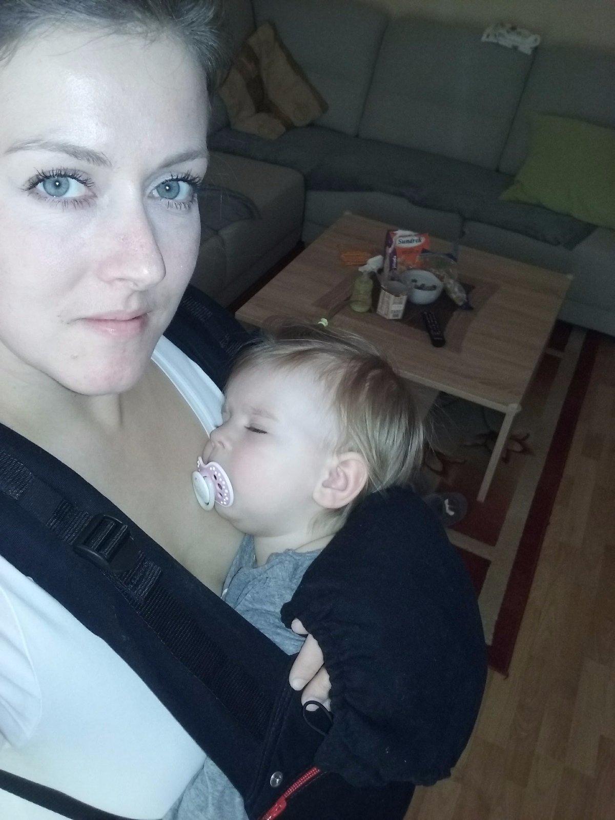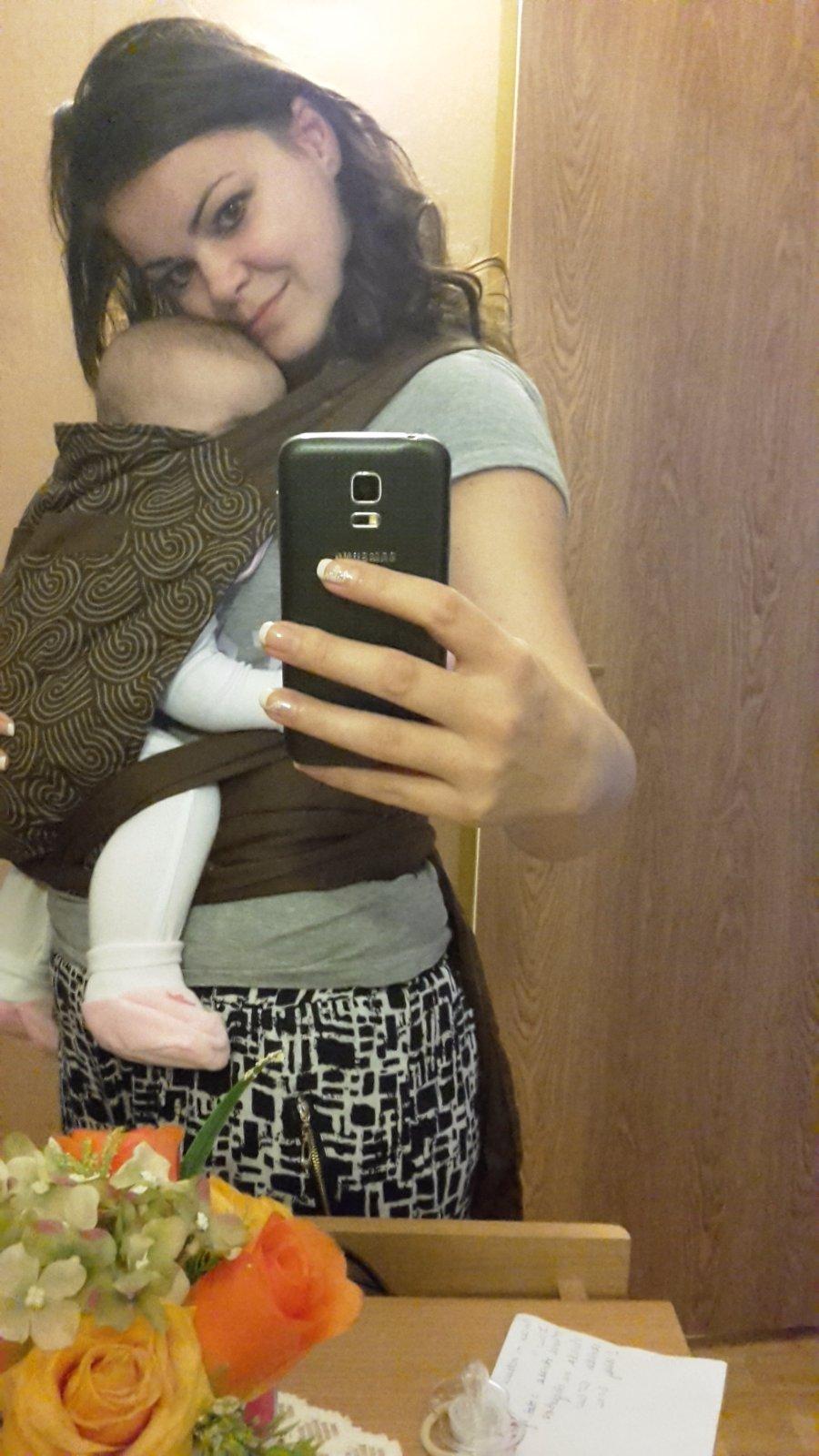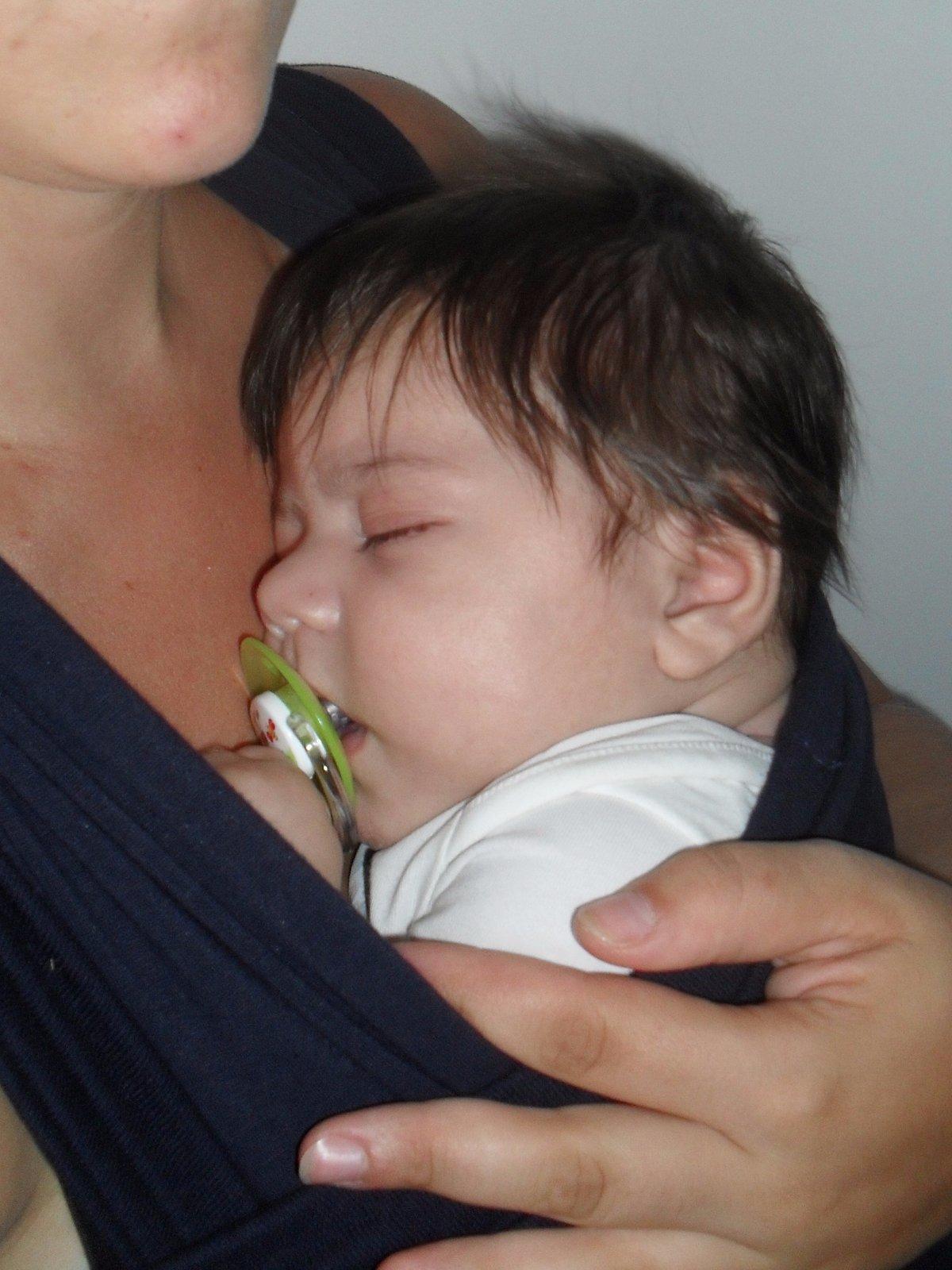 Nosíme hlavne doma, lebo cez deň sa spí len v takejto polohe. A aj keď treba ísť do odchodu a ocino nie je doma.