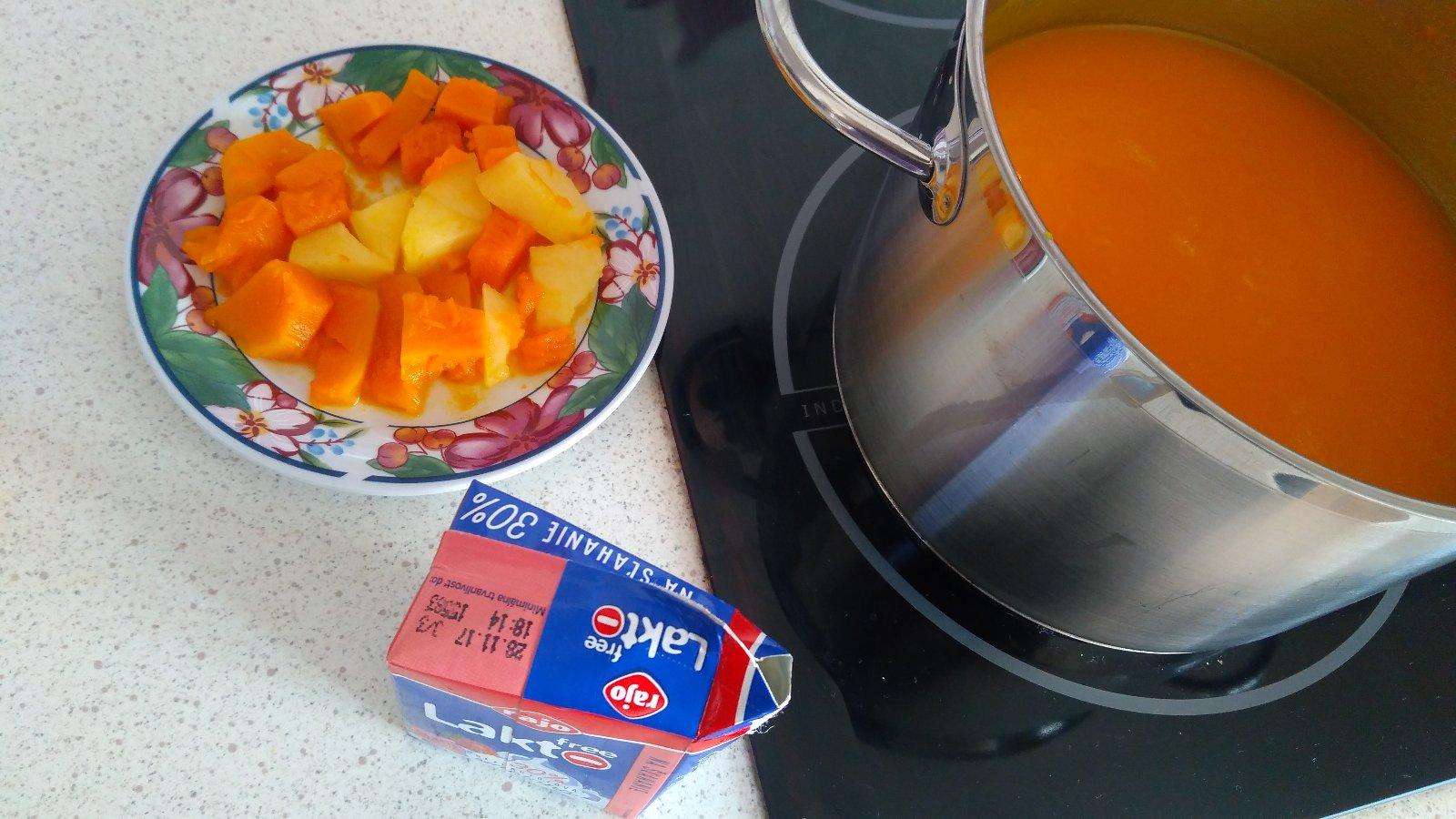 My dnes takto 😉 Výborná hokaido polievocka s ešte lepšou #rajo laktofree smotankou, pre bábätko odložená uvarená tekvicka a zemiacik, ešte pred ochutením. Ale zblajzol to ako malinu, strašne mu chutilo a nám tiež 😂 A máme aj na zajtra! Čo budete variť cez vikend? Jednej z vás pošlem za odpoveď maličkosť z Rajo 😘