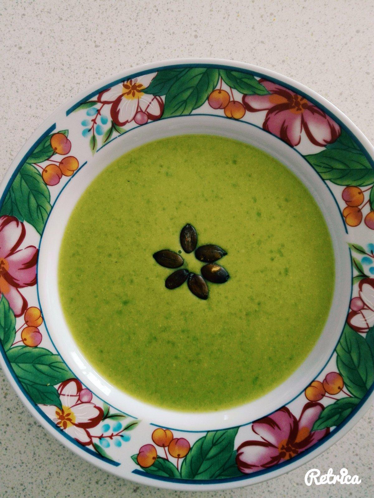 Vynikajuca polievocka hotova za 10minut 🙂 Mrazeny hrasok, kedze este nie je cerstvy, zalejeme vodou a nechame chvilku varit. Pridame kvalitnu dusenu sunku, sol, vegetku a pomixujeme. Potom uz len sup #rajo sladku smotanu, ja davam slahackovu a lyzicu hraskyna zahustenie. No a kedze inu chrumkavinu nemame, pochrumkali aj slnecnicove semienka 🙂