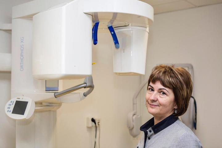 Naša druhá výherkyňa súťaže o krásny úsmev, pani Júlia, už má za sebou prvý krok k pekným zubom. Kedže je z východného Slovenska, vyhovovala jej skôr naša pobočka v Žiline, v Auparku. Aj tam ordinuje náš primár Mudr. Alexander Schill. Po milom privítaní sa spoločne so svojim skvelým tímom pustil do práce 🙂 Výsledok uvidíte onedlho!