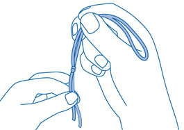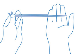 2. Chyťte oba konce a zviažte ich spolu. Cieľom je vytvoriť slučku, ktorá bude pevne obopínať 4 prsty jednej Vašej ruky.