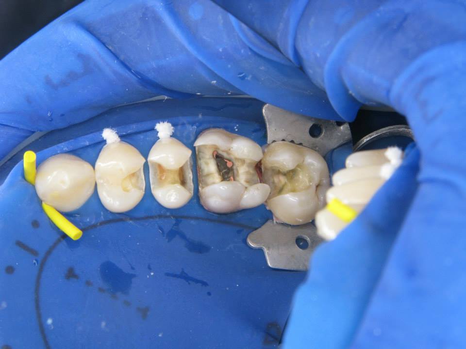 Príbeh: náš pacient Peter (34 rokov) k nám prišiel s tým, že nebol spokojný so starými, nevyhovujúcimi amalgánovými plombami. Najskôr sme staré amalgánové výplne odstránili. Pri práci používame tzv. kofferdam (modrá blana), aby sme zabezpečili úplnú izoláciu pracovného poľa (nejdú nám na ošetrované zuby sliny a do úst nejdú prípravky používané na ošetrovanie, čo chráni aj pacienta). Po vymenení 3 výplní sme na poslednom zube prerábali koreňovú výplň a nalepili keramickú onlaye výplň. Výsledok je maximálne estetický. Staráme sa o vaše zuby ako o vlastné. Môžete sa na nás spoľahnúť.