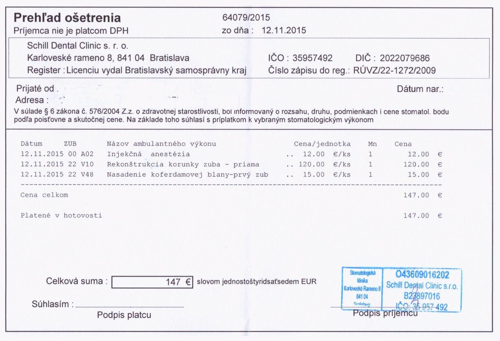 Ceny su v BA vysoke u Schilla este vyssie. Sestra tam chodia cela rodina, svagor tam minule nechal 400 eur a to iba za 2 plomby a hygienu. Ja som u mojho zubara za toto zaplatila asi 150 eur a prdinaciu maju v centre na urovni schilla aj s vlastnou hygienckou, rontgenom, najmodernejsimi strojmi, recepcnou,......atd.