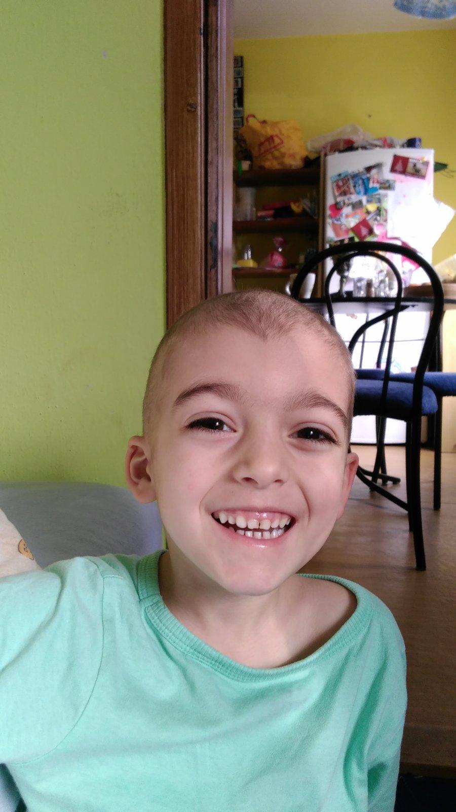Uz ma 7 rokov a uz sa to lepsi - da sa "pokosit" doma strojcekom, ale robi okolo toho sceny frut. Akurat uz tak nereve... A stoji holy vo vani, na pleciach uterak a hned vsetko splachneme prec. Ale predtym ho asi tyzden spracuvavame, ze treba pokosit vlasy 😀