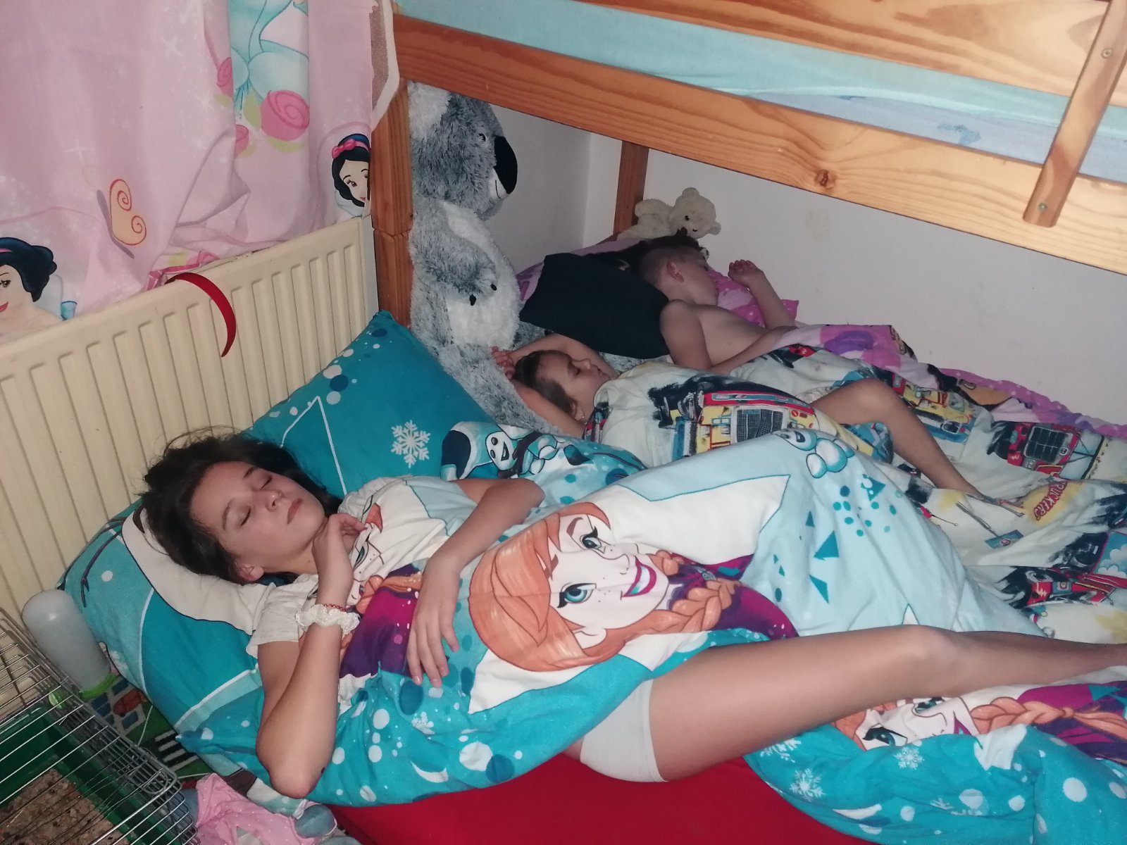 Áno ,každé z nich má vlastnú posteľ , ale toto je každodenne už spanie ,lebo kým idú spať sú na svojich postielkach 😊no v noci a ráno sú takto 😉