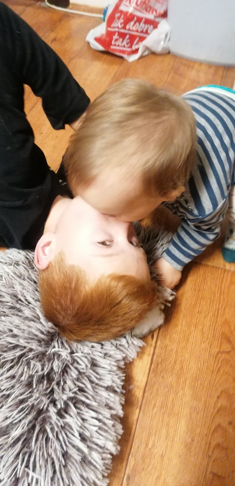 Najprv mu vypichne oko ,pozrie nos ,a potom mu ide dať veľkú pusu s tým že ho kusne 😂😂😂 jak ja toto milujem ,ony sú ako bratia nie ako strýko a synovec 😍😍
