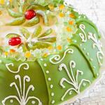 Vo vode vymiešame práškový cukor a touto zmesou po bokoch torty kreslíme ornamenty.