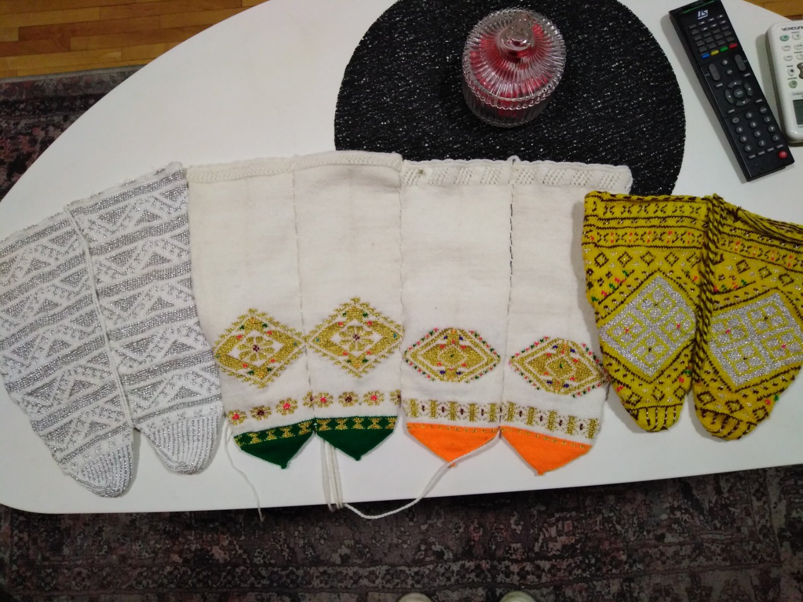 Oh...a okrem toho si nesiem aj bombastické tradičné ponožky z akéhosi tuhého materiálu. Už som ich aj slávnostne odskúšala. Nohy mám v nich jak v sadre, ale hrejúúúú. A vyzerajú ako kúsok zo sultánovej skrine 😀.