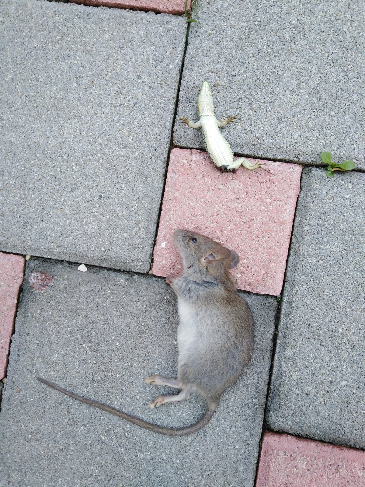 Inak, mačky zbožňujú svokra tiež...každý deň mu nosia "dary", ktoré pokladajú pred dvere, alebo pred svokrove auto.....akurát 31. októbra mu doniesli toto 😅😅
