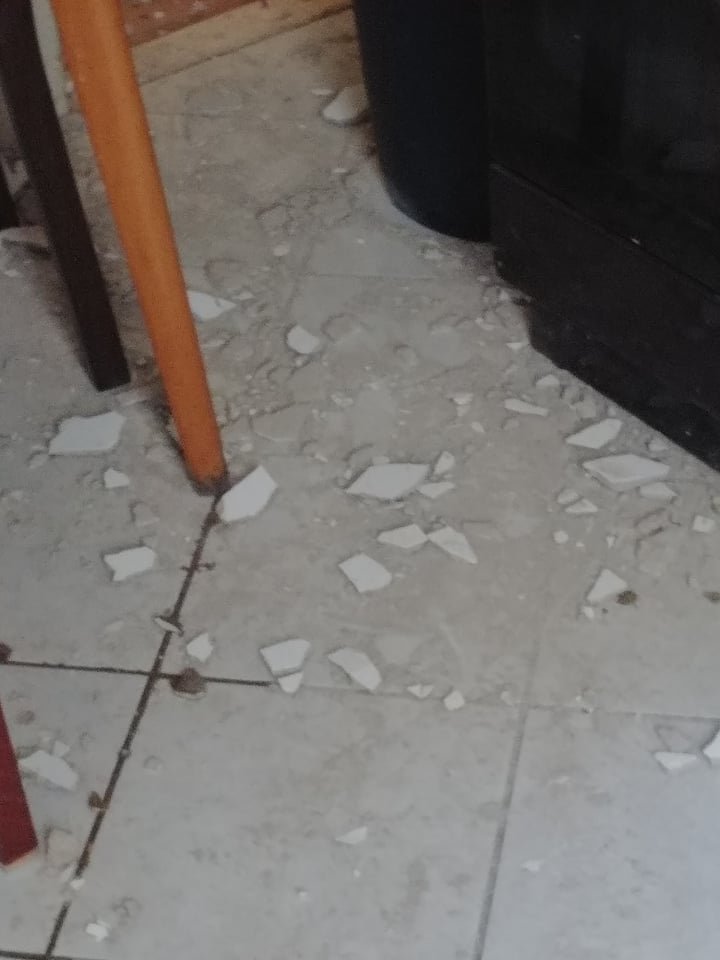 ako prvé som mala fotky zo susedinho bytu. Ona býva dve poschodia nad nami v nadstavbe. Ked som videla, čo to spravilo jej, čakala som, že aj u nás to bude také hrozné. jej všetko vypadalo zo skríň, rozbila sa jej telka, popadali police s porcelánom...celý byt má na kašu. Pri pohlade na náš byt, mi trochu odlahlo, lebo som čakala horšie. Asi tie dve poschodia vela spravili...suseda ešte pod nami nemá vraj ani toľko, čo my.