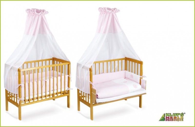 Klups drevená postieľka Piccolo Borovica + posteľné doplnky modré - pôvodná cena 120 eur, cena teraz 80 eur