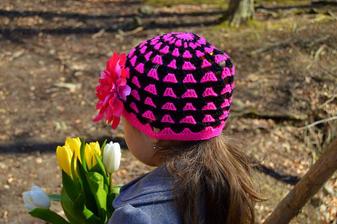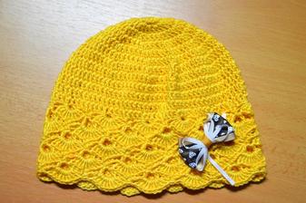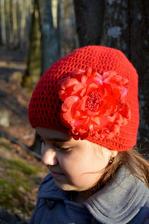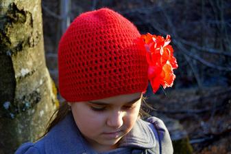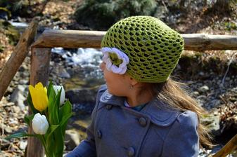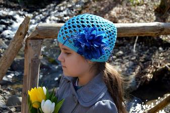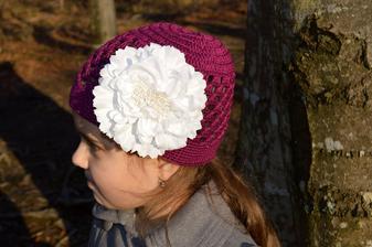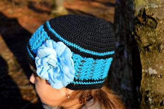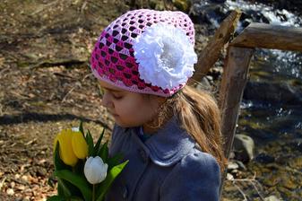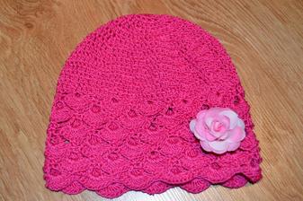 Ručne háčkovaná čiapočka s veľmi pekným vzorom a kvetom.