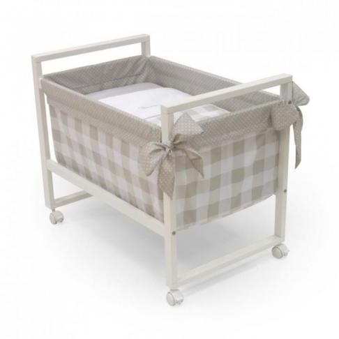 Detská postieľka španielskej značky Cambrass vhodná pre prvé mesiace dieťatka. Postieľka z masívneho bukového dreva s bielou povrchovou úpravou. Jednoduchá manipulácia vďaka kompaktnej veľkosti, otáčavým kolieskam a brzdám umožňuje ľahko presunúť postieľku na požadované miesto i prejsť cez dvere. Tkanina je snímateľná a možno ju prať. Odporúčaná pre deti do 6-8 mesiacov.