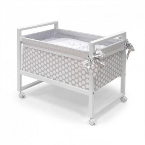Detská postieľka španielskej značky Cambrass vhodná pre prvé mesiace dieťatka. Postieľka z masívneho bukového dreva s bielou povrchovou úpravou. Jednoduchá manipulácia vďaka kompaktnej veľkosti, otáčavým kolieskam a brzdám umožňuje ľahko presunúť postieľku na požadované miesto i prejsť cez dvere. Tkanina je snímateľná a možno ju prať. Odporúčaná pre deti do 6-8 mesiacov.