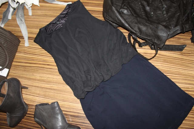 Kombinované šaty MANGO v. L - 18 €, Trendy bunda Bershka v. L - 26 €, kabelka MANGO - 24 €