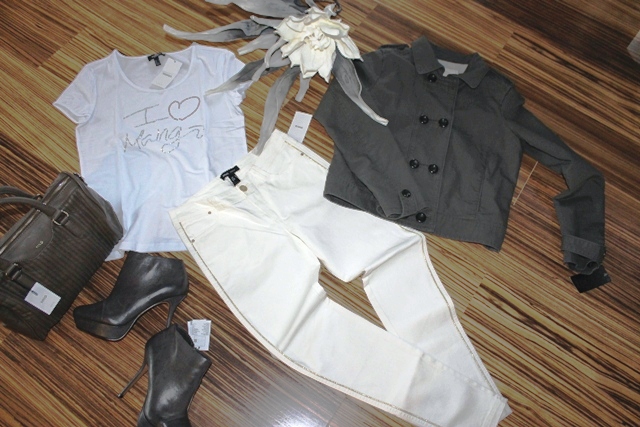 Jeansy MANGO v. 36 - 20 €, Tričko MANGO v. M a L - 11 €, Bunda MANGO v. L - 27 €, kabelka MANGO - 24 €