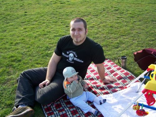 len si tak sedkam a podopieram ocinka aby nespadol..