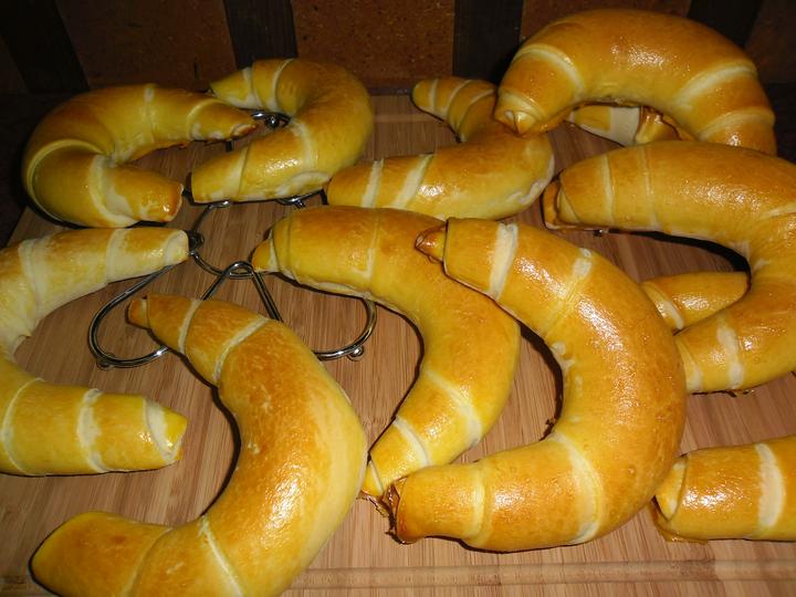 Pečeme ve vyhřáté troubě na 170 stupňů asi 10 minut. Hned po vytažení z trouby potíráme bílkem, aby byly lesklé.