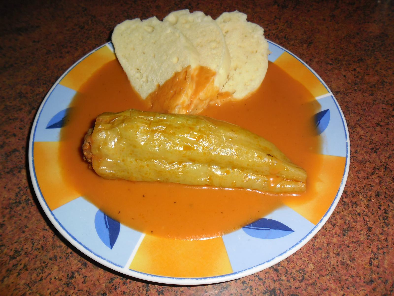 Plněné papriky v rajské omáčce s domácím knedlíkem